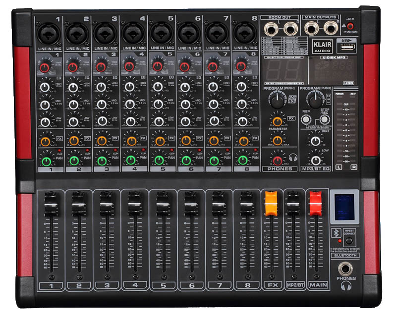 8路調音臺-TX-ME08 帶藍牙播放帶有數碼顯示MP3(U-DISK MP3輸入),MP3帶有錄音功能。每通道帶靜音開關,內置16種DSP效果,供卡拉OK用的話音消除功能。 了解更多詳細資料,請與我們聯系!聯系電話:400-678-1018 ◆帶藍牙播放 ◆帶有數碼顯示MP3(U-DISK MP3輸入),MP3帶有錄音功能。 ◆每通道帶靜音開關。 ◆內置16種DSP效果,供卡拉OK用的話音消除功能。 ◆五段效果電平監聽指示。 ◆雙+二段電平顯示主輸出。 ◆錄音、耳機監聽輸出。 ◆每通3段均衡器。 ◆單聲道/立體聲輸入通道 8 ◆麥克風輸入 8 ◆MP3 / 播放器 有 ◆單聲道通道均衡 1 ◆通道輔助發送 1 ◆編組輸出 1 ◆效果器 16 上一篇:6路調音臺-TX-ME06 下一篇:16路調音臺-TX-ME16